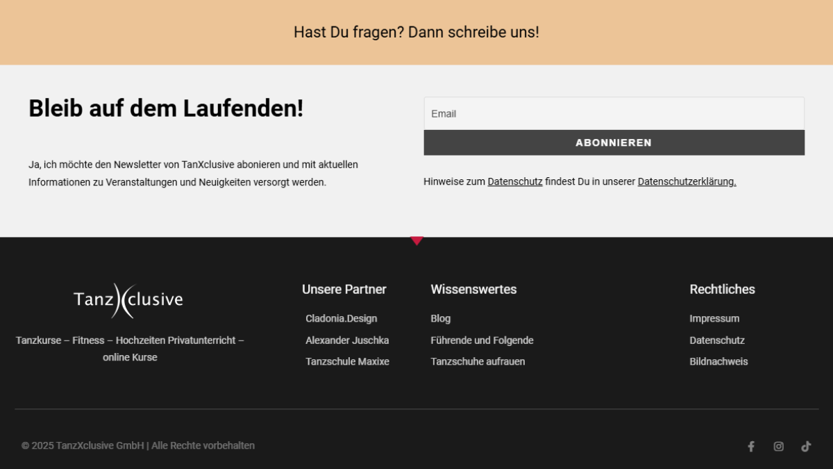 | 880 | Fortlaufende Tanzkurse, tanzen lernen, Tanzxclusive | | |